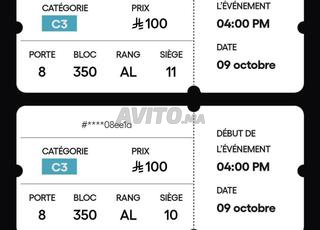 3 تذاكر من الفئة 3. بسعر 230 درهم فقط