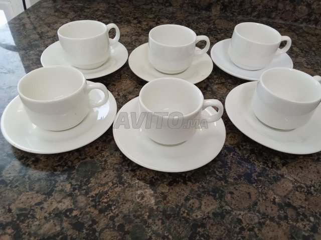 tasses à café avec petites assiettes