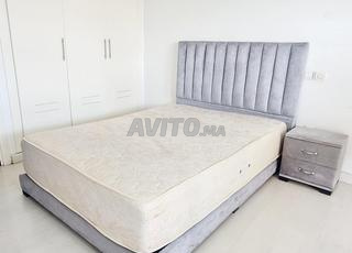 سرير مع قاعدة سرير و 2 منضدة