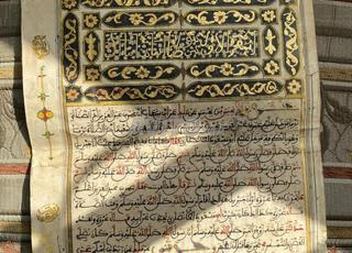 صفحة قديمة من كتاب الموطأ مزينة بالذهب