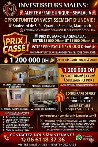 شقة 3 غرف صالون 2 حمام 133م2 في Semlalia