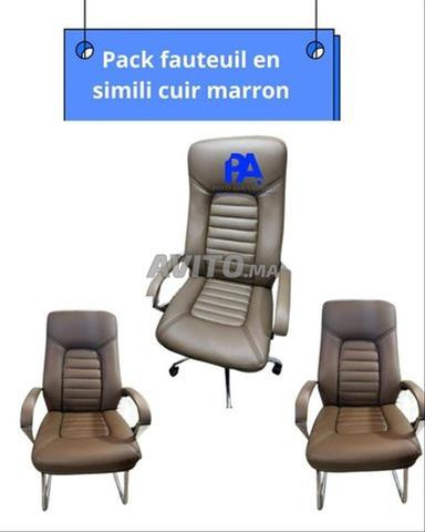 طقم كراسي من الجلد الصناعي البني