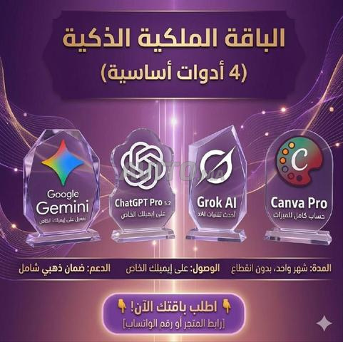 تحصل على ChatGPT Pro 5.2 بكامل قدراته، وGemini من Google، وGrok بدون أي قيود، وكلها تعمل معك لمدة شهر كامل بدون أي انقطاع مضمون.