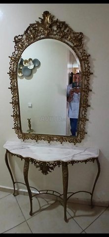 - Ensemble miroir avec console cuivre et marbre.