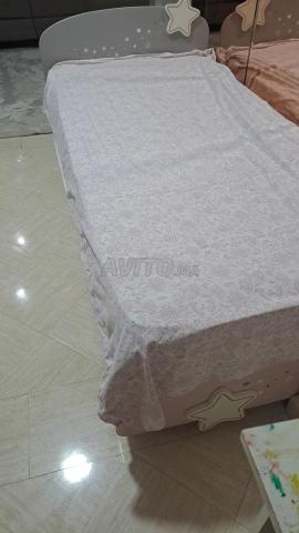 Je vends un lit enfant presque neuf avec son sommier , son matelas, table de chevet, bureau et commode de la collection kitea stella à 4000 dirhams.