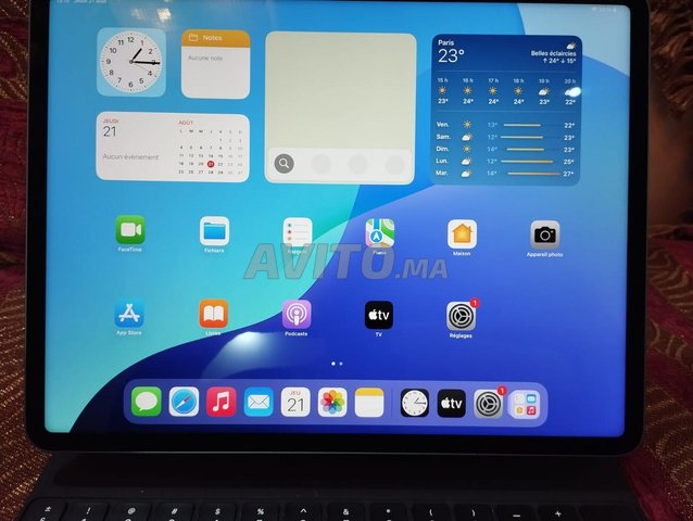 Ipad pro M1 12.9 pouce, 5éme Generation, 256 Go, wifi, Model 2022, 1000 cycle, état de batterie 90%.