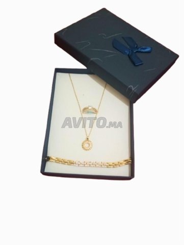 Un ensemble de bijoux pour femmes élégant de quatre pièces comprenant un collier au design simple et luxueux, une magnifique bague en or de taille 8, et un bracelet orné de fleurs noires élégantes qui ajoutent une touche esthétique envoûtante. Convient à toutes les occasions et donne à votre look une allure de raffinement et de beauté. L'ensemble est livré dans deux jolies boîtes-cadeaux de couleur rouge et bleue.