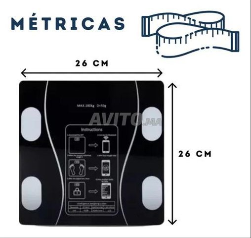 đ Permet d'afficher la masse musculaire, la densitĂ© osseuse, la graisse viscĂ©rale et l'indice de masse corporelle (IMC).