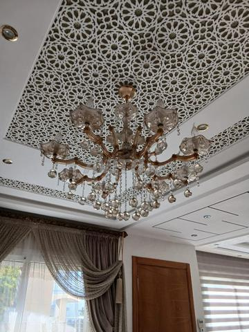 Salon marocain complet à vendre avec bois, assises, coins, rideaux, lustres, etc,