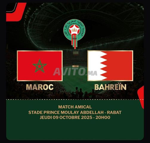 2 Billets Hospitality 1500 dh Maroc Vs Bahrein