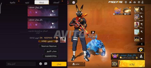 - Compte Free Fire propre, contactez via WhatsApp rapidement.