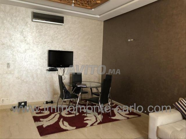 A louer appartement neuf, haut standing et meublé, situé au rez-de-chaussée dans une résidence sécurisée. Il comprend un hall d’entrée, salon européen (TV et table basse comprises), une salle d’eau pour les invités, une grande terrasse privative, une salle à manger, une chambre parentale avec dressing et salle de bain (robinetterie de haut de gamme), une cuisine équipée avec buanderie, climatisation centralisée. Immeuble avec garage et ascenseur.