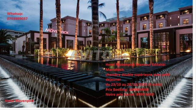 Exemple: Hotel Movenpick Mansour Eddahbi à Marakech, chambre double supérieure pour 2 personnes avec petit déjeuner (3 nuits du 23/10 au 26/10/2025 Prix Booking 12000 Dirhams, notre prix Secret Hotels 8999 Dirhams). Vous économiserez donc 3000 Dirhams.