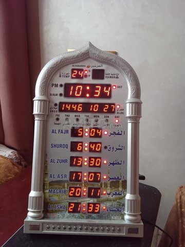 On vends un ensemble d'horloge pour l'Adhan. Elle affiche :