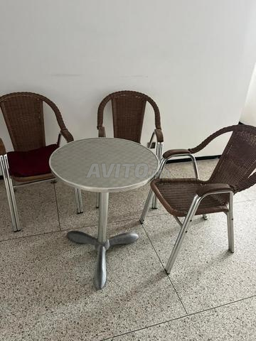 - Table ronde en inox avec 3 chaises