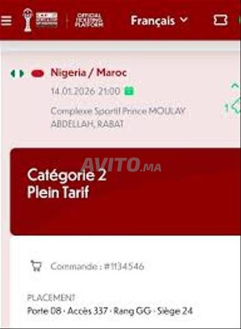 Je mets en vente 2 tickets match maroc vs nigeria / demi final