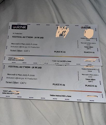 2 tickets b 150dh