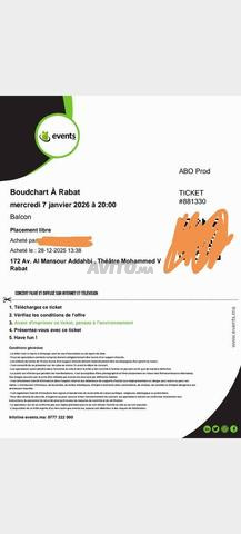 Suite à un empêchement familial, je vends 8 billets balcon en placement libre pour Boudchart Le 07/01 a rabat.