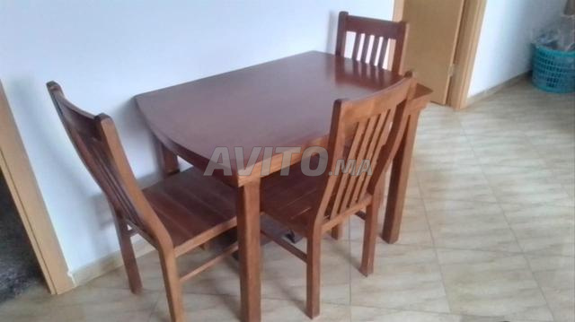 salam je mets ma table avec 4 chaises en bois de hetre en bon état si vous etes interessez n'esiter pas de m'appeler merci