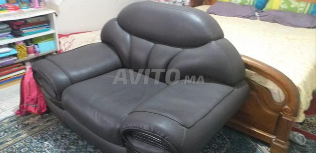 Salon en cuir. Prix : 2500 درهم.