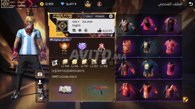 Compte free fire niveau 83 avec 16k diamants, livraison immédiate, à vendre...