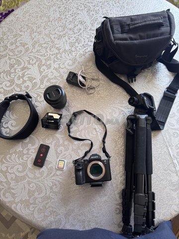Sony a7ii fonctionne très bien vendu avec le sac et chargeur et retour écran et 2 cartes mémoires 256gb et 128g et le trépied il manque cache batterie et le cache sur le côté gauche prix ferme non négociable