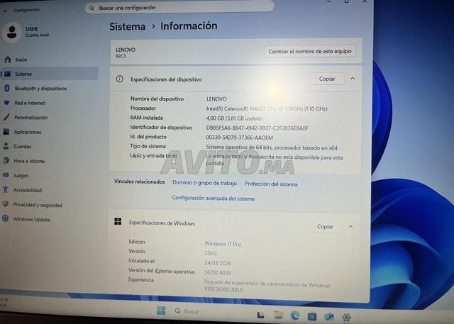 Ordinateur portable Lenovo V15-IGL en excellent état (très peu servi). C’est un PC fiable, léger et parfait pour le télétravail, les cours en ligne ou la navigation internet.