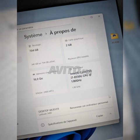 Je mets en vente mon ordinateur portable dell latitude 3490 i7 8th avec écran tactile, 256GB de stockage et 16 ram, l'ordinateur est en très bon état avec chargeur original ,