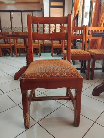 Je vends 45 chaises de café en bois et 14 tables, d'occasion en bon état.