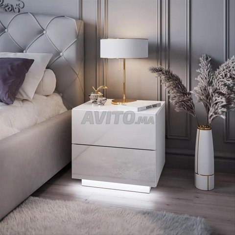 - Table de chevet 2 tiroirs avec LED