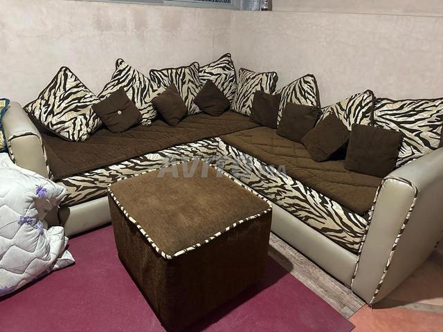 Un petit L avec ses petits et grands coussins et une petite table. Celui ou celle qui est intéressé(e) qu’il m’appelle.