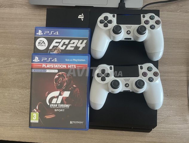 PS4 en tres bon etat vendue avec deux manettes et deux jeux inclus dans le prix. Gran turismo et Fifa 24