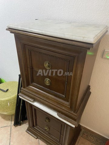 - Deux Table de nuit bois massif et marbre