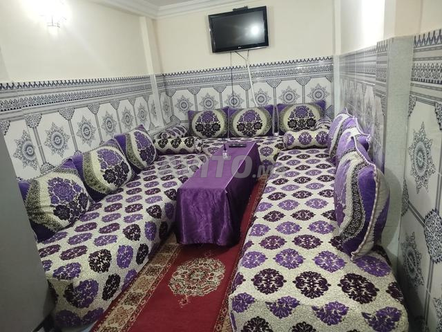 Situé dans une Résidence sécurisée , ce studio duplex est composé d'un salon marocain et d'une cuisine américaine au rez de chaussée , un coin bureau , une toilette douche et une chambre a coucher au premier étage .