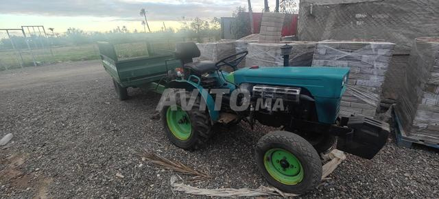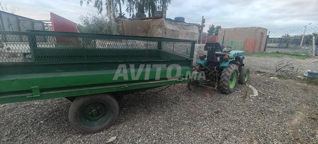 Petit tracteur avec son chariot, il a une panne.