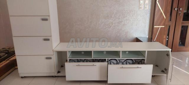 je met en vente un meuble TV très solide et robuste en bonne état avec son Buffet à quatre portes