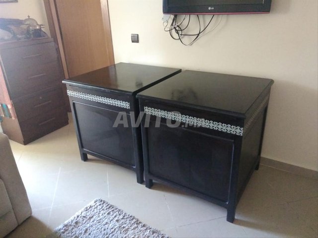 Je vends deux meubles de rangement d’angle (format carré 70x70 cm) pour salon marocain, en bon état. Chaque meuble dispose d’une porte et d’un espace intérieur (cave) pratique pour y ranger ou cacher des objets. Idéal pour compléter un aménagement de salon traditionnel.