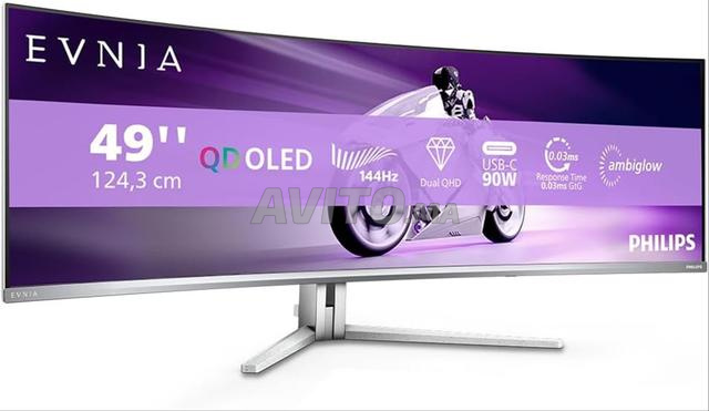 Moniteur Philips 49M2C8900L 49 pouces DQHD, 144 Hz, QD-OLED, 0,03 GtG, Adaptive Sync, HDR400 TrueBlack, FreeSync Premium Pro, hauteur réglable, haut-parleurs (5120 x 1440, 2 ports HDMI 2.0, 1 port HDMI 1.4, 1 port USB-C), blanc,edis,produits neufs, livrés sous emballage d’origine et couverts par une garantie de deux ans.