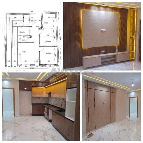 pour réserver sur plan chez le notaire magnifique appartement a vendre a eljadida au Quartier nakhil 7 au rez de chaussée 10 min a pieds vers centre commercial Marjane de 82 m se compose d'un salon séjour 2 chambres dont deux avec placard cuisine équipée avec salle a manger 2 sdb la coure prix 620 000 dh livraison 5 mois ,