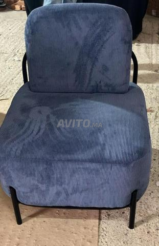 🪑 Chaise confortable et élégante, recouverte d'un tissu en velours côtelé bleu, avec une structure en fer robuste. Convient pour le salon ou le coin salon, en excellent état. Prix raisonnable, contactez en privé.