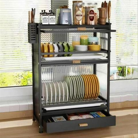 Ce meuble de rangement pour vaisselle à 4 niveaux est conçu pour offrir une solution pratique, hygiénique et élégante pour organiser votre cuisine