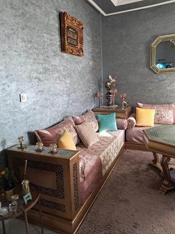 Bon salon marocain baladi avec table rwak adroit 2.85 en face 3.50 a gauche 3m