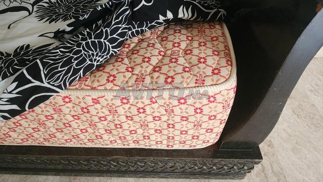 Bois hêtre venge, matelas mesidor, tissu odyssée en très bon état ,