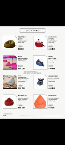 Utilisation : intérieur (salon, chambre, coin lecture, salle de jeux) et extérieur pour certains modèles.