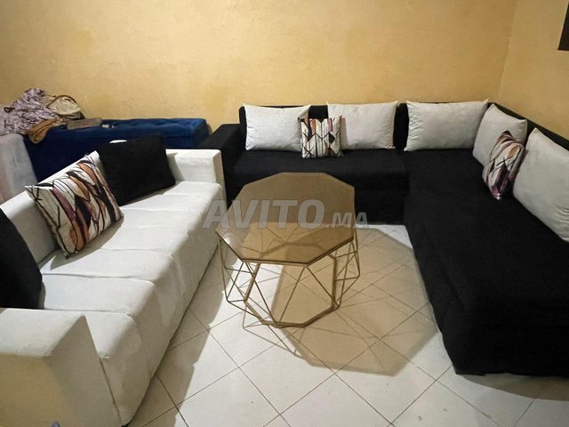 salon 3 fauteuils noir et blanc presque neuf plus table plus tv 32 a vendre sur bouznika prix 7500 prix fix