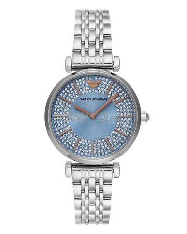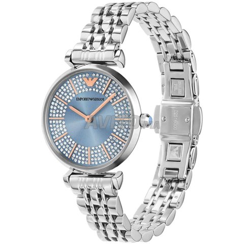 AR11594 Emporio Armani Gianni T-Bar Argenté / Bleu 32 mm