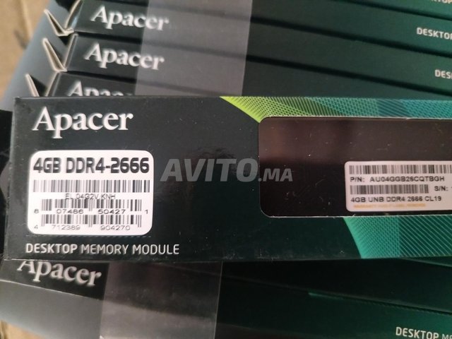Je mets en vente des barrettes mémoires DDR4 d'une taille de 4GB fréquence 2666 pour pc bureau neufs sous emballage, 250dh par unité.