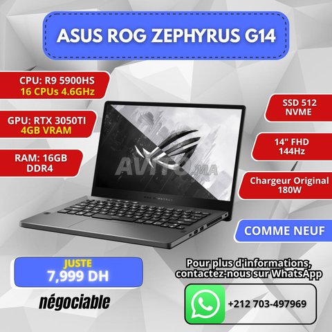 ⚡ ASUS ROG ZEPHYRUS G14 | Ryzen 9 5900HS | RTX 3050 Ti | 16 Go RAM