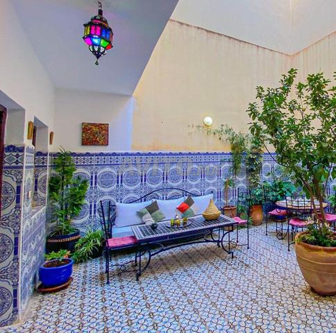 Elle propose deux salons marocains (grand et petit), deux chambres (un lit double et deux lits séparés), un séjour, une salle de bain une cuisine équipée et une agréable cour intérieure verdoyante.