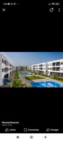 Un bel appartement à louer à Magic housse tranche 4 elmansouria vue sur 3 piscines parking sous terrain sécurisé 24 fibre optique disponible pour les familles et les couples mariés